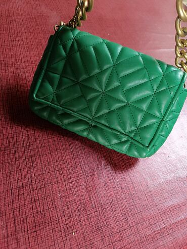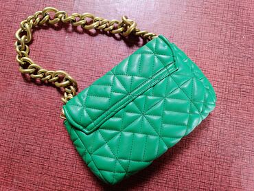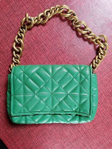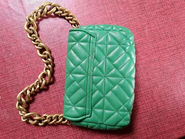 Stajliš akcenat koji podiže svaku odevnu kombinaciju, spoj efektne zelene boje i zlatnog lanca...24x17x6cm.