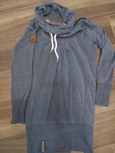 Džemper-haljina, veličina M. Tamno siva boja, dugi rukavi, drapirani