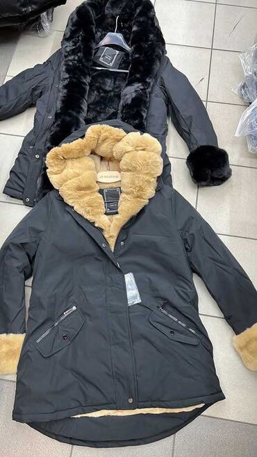 Zimska ženska parka kaput, bež/peščane boje, sa bogatom krznastom postavom i detaljima: - Velika kapuljača i ivice sa dužim, mekanim krznom za dodatnu toplinu - Unutrašnja kompletna krznasta postav...