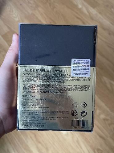 - Dizajn: minimalistički, sofisticiran izgled sa zlatnim gradijentom na bočici i potpisom „Ganymede”, logotipom kuće na čepu