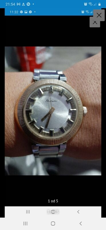 UpotrebljenоMehanicka sat Raketa ispravan ovo je redak stari model sata ima beli modelii,a zlatni su retki,sat je pozlacen sa debelom pozlatom,sat tacno radi ima rubine neznam koliko nisam ga otvarao,sat bih trebao da cisti kod casovnicara hoce neki put da stane ili da se steluje,cenu sam spustio zbog toga jer ovaj model sata je dosta sjuplji,sat je original made in ussr cena je fiksna lepo stoji na ruci,pogledajte moje ostale satove srecno..