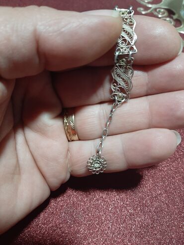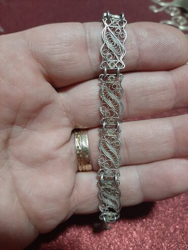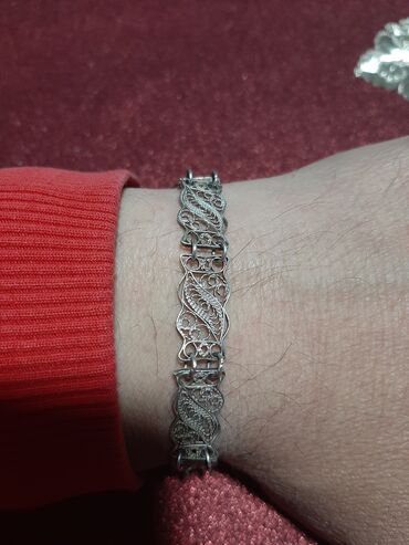 Narukvica stara srebrna 900 finoce jako redak model narukvice na narukvici nema pecat jer je jako stara i rucni rad nisu stavljali pre pecate, nosena je u zlatari na proveru rekli su da je 900 ili cisto srebro,pogledajte moje ostale oglase srecno.
