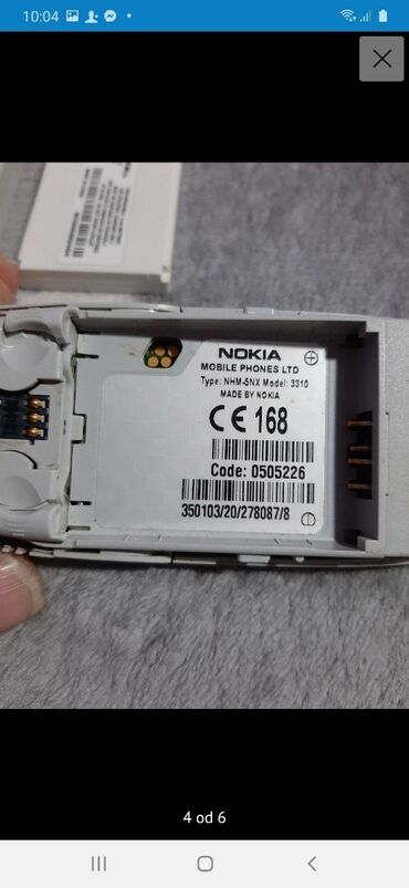3310Nokija 3310 ispravna ocuvana telefon radi na sve mreze,baterija odlicna,telefon je original vidi se na slikama uz telefon ide punjac srecno...