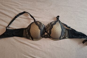 Čipkani bralet u crnoj boji sa nežno roze postavom. - Model bez žice, mekane trodelne korpice sa providnom crnom čipkom preko roze tkanine - Dekorativna satenska mašnica na mostu - Podesive narame...