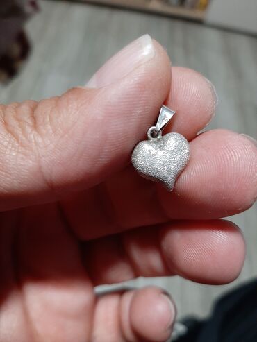 Presladak privezak od hiruškog čelika, sa belim kamenom u sredini, srebrne boje, nenošen.