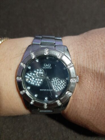 UpotrebljenоZenski sat Original ispravan jako lep model sata sa cirkonima okolo i unutra u srce nefali ni jedan cirkon,ima senka na njemu od svetla uzivo nema nista cirkoni samo sijaju pogledajte moje ostale oglase srecno.