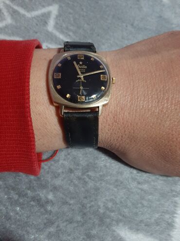 UpotrebljenоAreta mehanicka ispravna sat ima 17 rubina Deluks sa crnim ciferom sat je redak model stanje se vidi na slikama narukvica je kozna polovna sat tacno radi srecno.