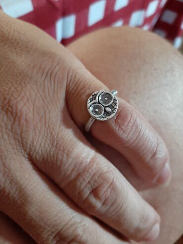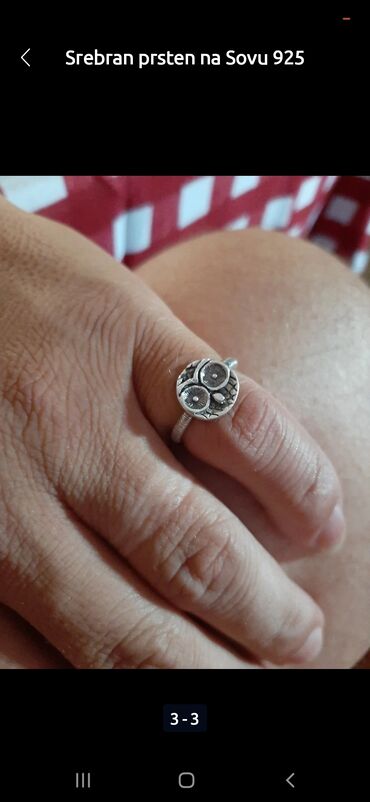 Srebran prsten na Sovu 925 finoce ceo je uradjen izgled sove,prsten je velicine 17 do 18 m.m pogledajte moje ostale oglase srecno.fiksno
