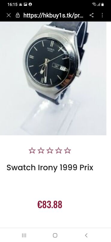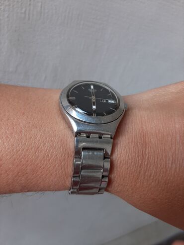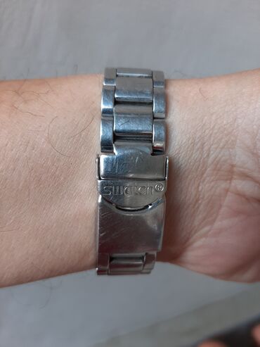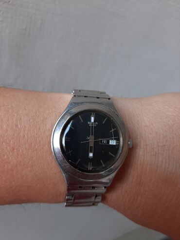 UpotrebljenоSwotch original sat ispravan na satu ima mala crta na staklu neulazi voda stanje se vidi i na slikama,sat ima dane i datum koji rade original njegova narukvica sa potpisom,sat je made Sviss,ima slika koliko kosta ovakav sat u dolarima,pogledajte moje ostale satove.