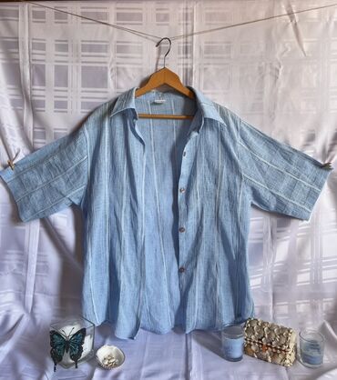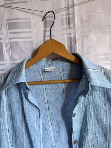 Muška košulja kratkih rukava od laganog materijala, idealna za tople dane. Karakteriše je svetlo plava boja sa diskretnim prugastim dezenom. Klasičan kroj sa kragnom i dugmadima omogućava udobno nošenje i lako kombinovanje uz različite odevne stilove. Pogodna za svakodnevne prilike, opušteno druženje ili letnje izlaske. Dostupna u veličini M.