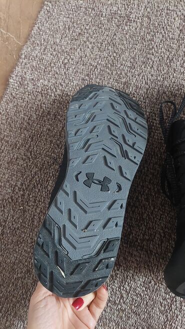 - Agresivan trail đon od sive gume sa dubokim kramponima za pouzdan grip na različitim podlogama; UA logo na potplatu