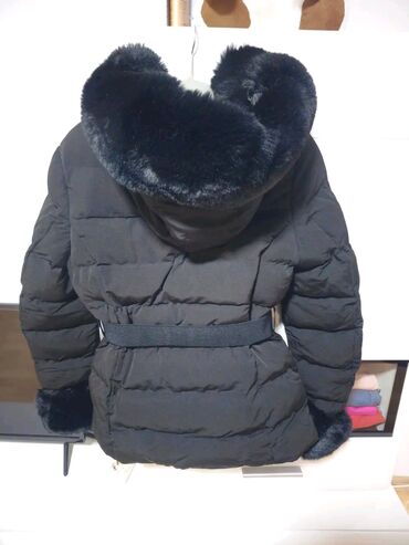 - Detalji od krzna: obod kapuljače i manžetne rukava bogato obrubljeni mekanim crnim krznom za dodatnu toplinu i izgled.