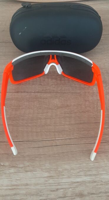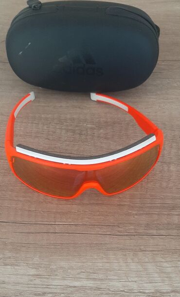 Sportske naočare Adidas – narandžasto/belo kućište sa jednodelnim zakrivljenim sočivom u zlatno‑narandžastoj (mirror) završnoj obradi. Aerodinamičan „shield“ dizajn pruža široko vidno polje i zaštitu od vetra i prašine, idealno za trčanje, biciklizam i ostale aktivnosti na otvorenom.