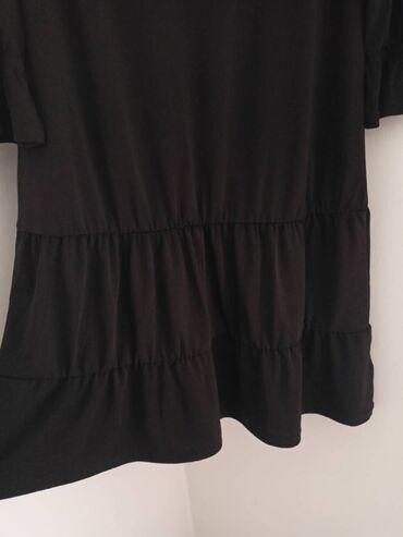 Elegantna večernja haljina – crna, duga, sa dramatičnim šlepom i visokim šlicem. - Kroj: sirena/suknja sa naborima napred, visoki otvor na butini, produženi asimetrični šlep sa strane. - Gornji de...