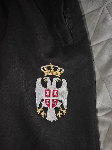 Crne trenerke sa izvezenim srpskim grbom - Model: duge trenerke