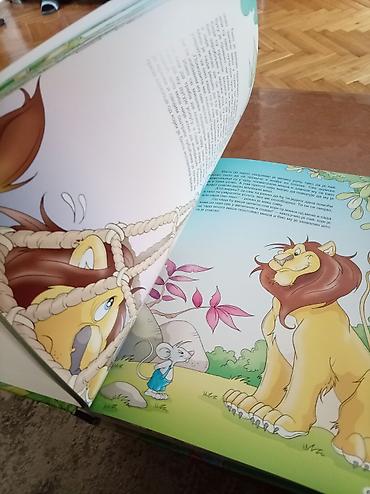 - Primerni naslovi vidljivi na koricama i unutrašnjim stranama: Pepeljuga, Mačak u čizmama, basna Lav i miš i druge poznate priče.