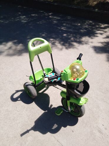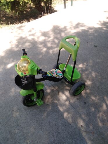 Praktičan tricikl za šetnje i igru, pogodan za rani uzrast kada dete tek uči da vozi, uz opciju guranja i vođenja preko ručke.