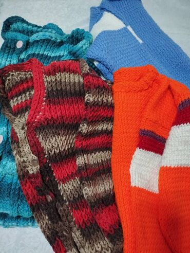 Džemper novi ručno pleteni 4 kom sve za 3800 din, vel 2XL. Obim grudi 95-105 cm, dužina 60-70 cm, dužina rukava 45-50 cm. Može i na komad. Pogledajte i druge moje oglase, imam još pletenih džempera, prsluka, sve novo.