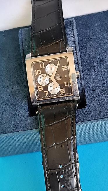 Stil: elegantan, klasičan dizajn sa pravougaonim kućištem i funkcionalnim podbrojčanicima, pogodan za svakodnevno nošenje i formalne prilike.