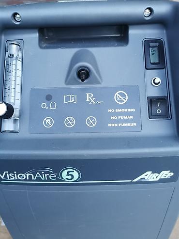 VisionAire 5 je miran i energetski efikasan uređaj za kontinuisani dotok kiseonika do 5 L/min, pogodan za upotrebu u kućnim uslovima uz medicinska uputstva. Zaključavanje boca i pušenje nisu dozvoljeni u blizini uređaja (označeno na panelu).