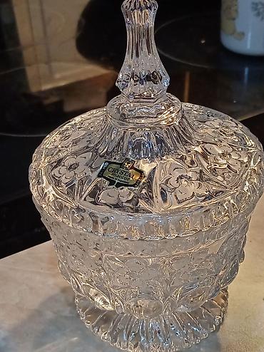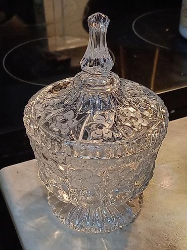 Kristalna bombonjera sa poklopcem na postolju - Materijal: kristalno