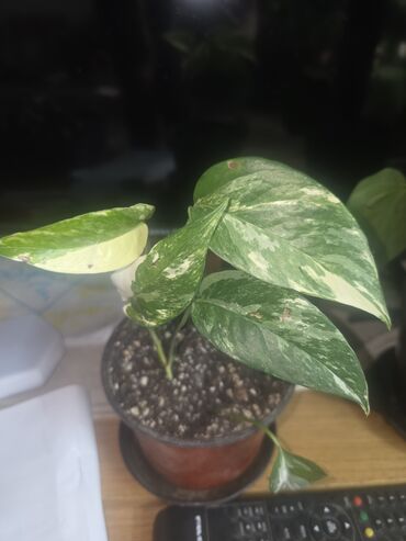 - Epipremnum aureum ‘N’Joy’ (variegata): kompaktna puzavica sa atraktivnim šarenim listovima u nijansama zelene i krem-beloj. U maloj plastičnoj saksiji sa rastresitim supstratom. Idealna za policu ili viseću saksiju, podnosi polusenku.