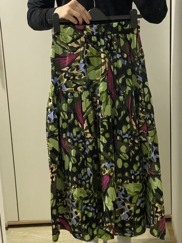 Suknja – duboki struk, veličina M. Boja: senf/oker. Kroj mini olovka sa blagim naborima sprijeda. Visoki struk sa širokim pojasom i dugim kaišem za vezivanje (mašna), kao i dodatnim provlakama. Kop...