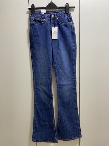 - Model: zvonaste nogavice (blagi flare), klasičan 5‑džepni kroj