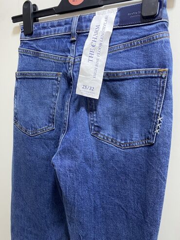 Farmerke FA SISTER – model Mom Fit, veličina XS. - Svetloplavi, isprani denim - Kroj: high waist, ravna nogavica (mom fit) - Prednji deo: petodžepni dizajn, rajsferšlus i dugme - Dekorativna ošteć...