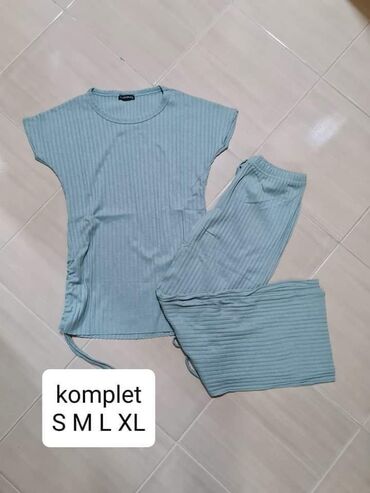 Pleten komplet (dลพemper i pantalone) u svetloplavoj nijansi. - Gornji