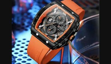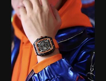 Sat sa silikonskim kaišem u stilu Swatch, neboplav, sa kućištem u boji roze zlata. Nov