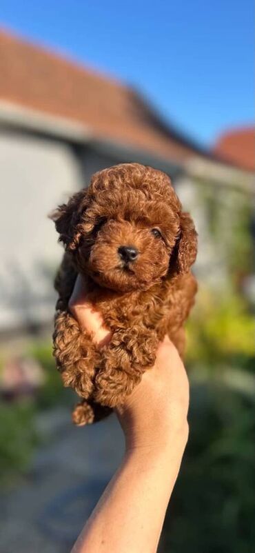 Francuski buldog – štene - Rasa: francuski buldog - Boja: fawn/krem sa crnom njuškom i belim grudima - Pol: mužjak (vidljivo na fotografijama) - Uši: uspravne, tipične za rasu - Građa: kompaktno, ...
