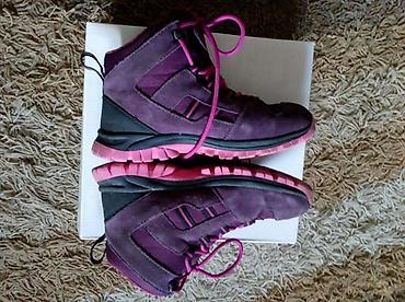 - Boja: tamnoljubičasta/bordo sa roze pertlama i đonom.