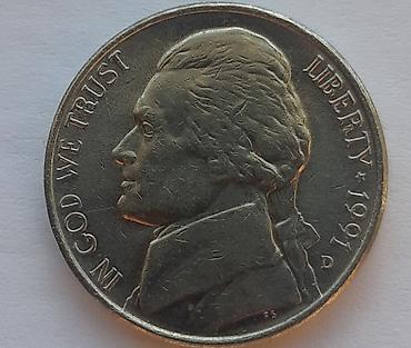 Američki nikl – Jefferson Nickel, godina 1991, oznaka kovnice “D” (Denver).