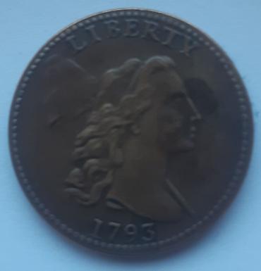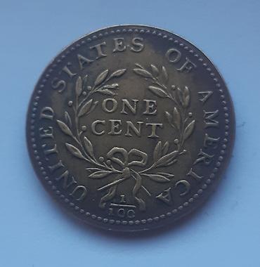 - 1 cent “Liberty” 1793 (Wreath/venac reverse): na aversu ženski profil s natpisom LIBERTY i godina 1793; na reversu venac oko natpisa ONE CENT, ispod frakcija 1/100, oko ruba UNITED STATES OF AMERICA. Detaljna perla ivica sa obe strane.