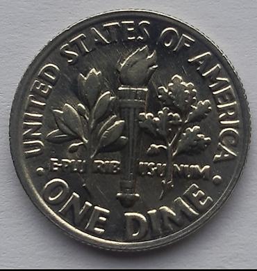 - Revers: baklja slobode u sredini, maslinova grančica (mir) s leve i hrastova grančica (snaga) s desne strane; natpisi UNITED STATES OF AMERICA, E PLURIBUS UNUM i ONE DIME.