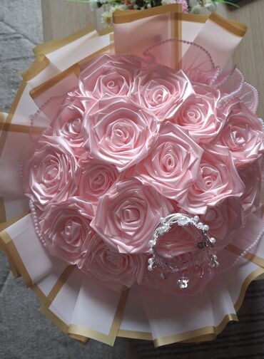 - Ruže izrađene od satenske trake, pažljivo formirane u guste cvetne glavice sa realističnim naborima.