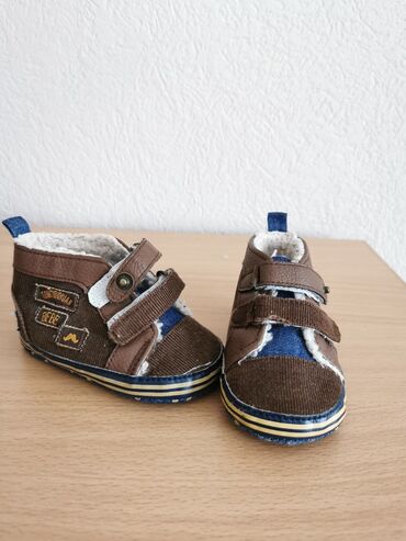 Dečje zimske čizmice – tople i mekane - Model: kratke smeđe čizmice sa plišanom, belom postavom koja greje stopalo i zglob. - Materijal spolja: meka, brušena tekstura prijatna na dodir. - Unutrašn...