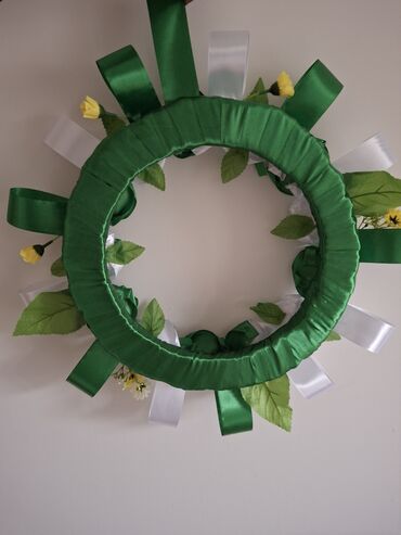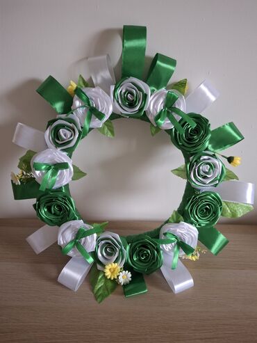 - Ručno izrađen venac u zeleno-beloj kombinaciji