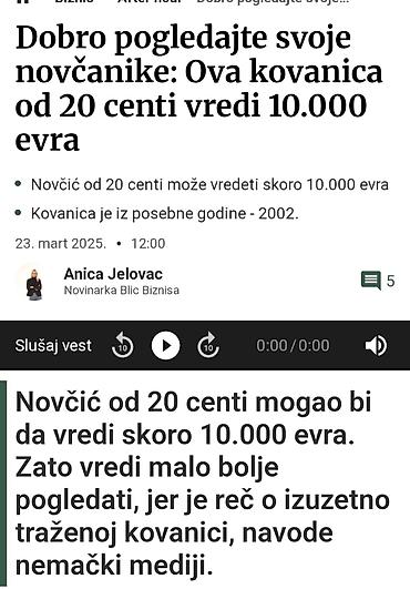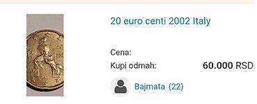 Italijanski kovan novac od 20 euro centi – godina 2002.