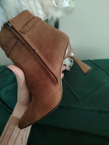 - Štikla: tanka “flauta”/kitten heel, stabilna, približno 7–9 cm