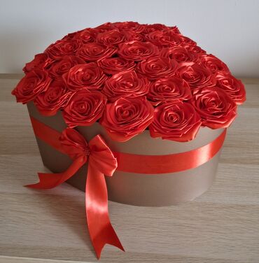 - Gornji deo ispunjen ručno rađenim ružama od sjajne satenske trake u intenzivno crvenoj boji