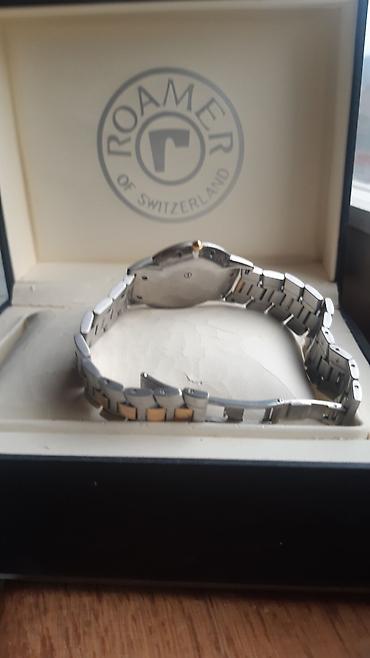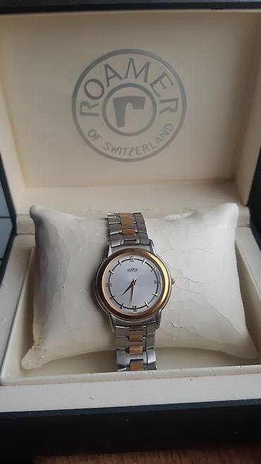 Elegantan ručni sat sa metalnom narukvicom u dvobojnoj kombinaciji (srebro i zlato). Okruglo kućište sa zlatnim bezelom, svetlim brojčanikom i minimalističkim oznakama sati (štapići + rimski brojevi na 12, 3, 6 i 9). Tri kazaljke (sat, minut, sekund). Brendiranje na brojčaniku „Ruhla“. Narukvica od nerđajućeg čelika sa umetnutim zlatnim segmentima i sklopivom kopčom. Klasičan, tanak profil – pogodan za svakodnevno nošenje i formalne prilike. Dizajn čist i čitljiv, bez dodatnih komplikacija.
