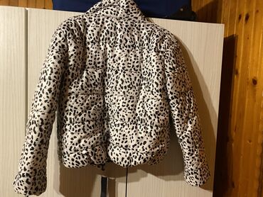 Ženska kraća puf jakna sa životinjskim printom (crno-bele „leopard“ fleke).
