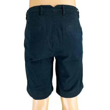 Muške bermude –vel.11 tamnoplave, chino kroj - Materijal: glatki pamučni saten sa blagim sjajem (lagan i prijatan za leto) - Boja: tamnoplava (navy) - Kroj: klasičan ravni kroj do iznad kolena - P...