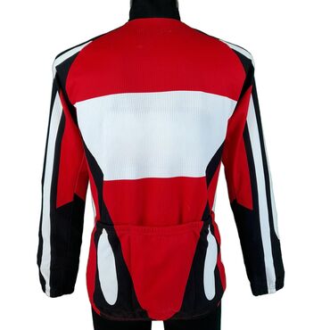 Za odrasleBiciklistički dres aitos, vel.. L marka: aitos veličina: l materijal: poliester dužina: 78 cm ramena: 50 cm rukavi: 63 cm prečnik grudi: 58 cm šifra: bk6446 originalni muški biciklistički dukser aitos u odličnom stanju (pogledajte slike).. Crveno-crno-bele boje, zakopčavanje na rajferšlus, veliki zadnji džep sa tri otvorene pregrade, izrađen od kvalitetog poliestera.. Nedostaje etiketa s veličinom, obratiti pažnju na mere u opisu.