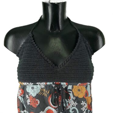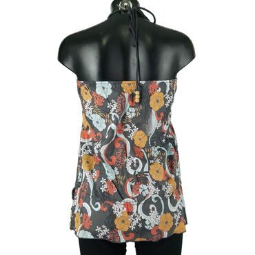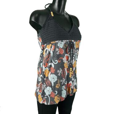Bluza esprit, vel.. M/38 marka: esprit veličina: m/38 materijal: pamuk 100% dužina: 61 cm prečnik grudi: 38-43 cm (guma) šifra: bk6105 originalna ženska bluza esprit u odličnom stanju (pogledajte slike).. Šarenog, cvetnog dezena, vezivanje oko vrata, pamučna.. Guma sa karnerom na dnu.