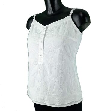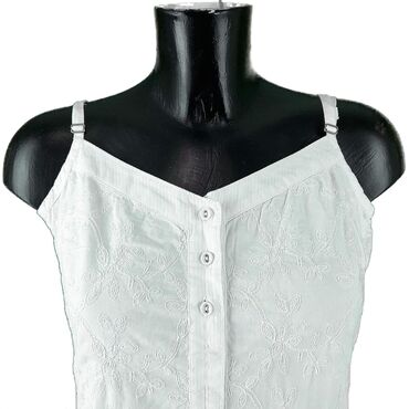 Siva ženska majica bez rukava sa šarenim natpisom “SUNDAY FUNDAY” na prednjoj strani. - Materijal: mekani pamučni dres sa sitnim, višebojnim tačkicama (melanž efekat) - Kroj: širok i ležeran, okr...
