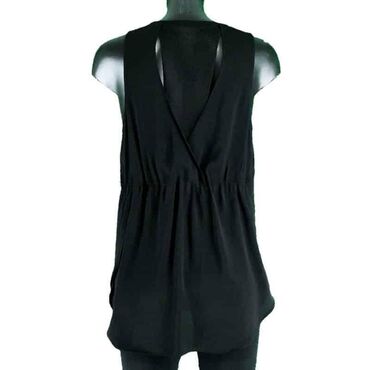 ZARA ženska bluza/tunika na dugmad - Boja: crna - Kroj: blago A-linija sa širim, naboranim donjim delom; V-izrez - Rukavi: dugi - Kopčanje: prednja dugmad u kontrastnoj, svetlijoj nijansi (5 komad...
