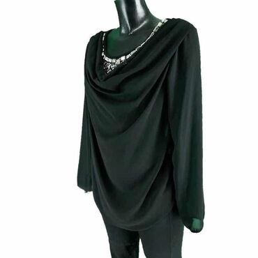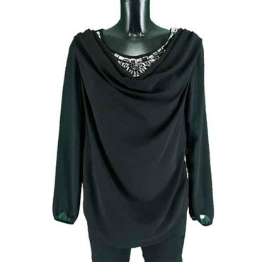 JednobojniBluza made in italy, vel.. L marka: made in italy veličina: l materijal: poliester 95% elastin 5% dužina: 68 cm ramena: 44 cm rukavi: 61 prečnik grudi: 50 cm šifra: bk7237 originalna ženska bluza made in italy u odličnom stanju, kao nova (pogledajte slike).. Crne boje, postavljena, sa lepim padom tkanine, elegantna.